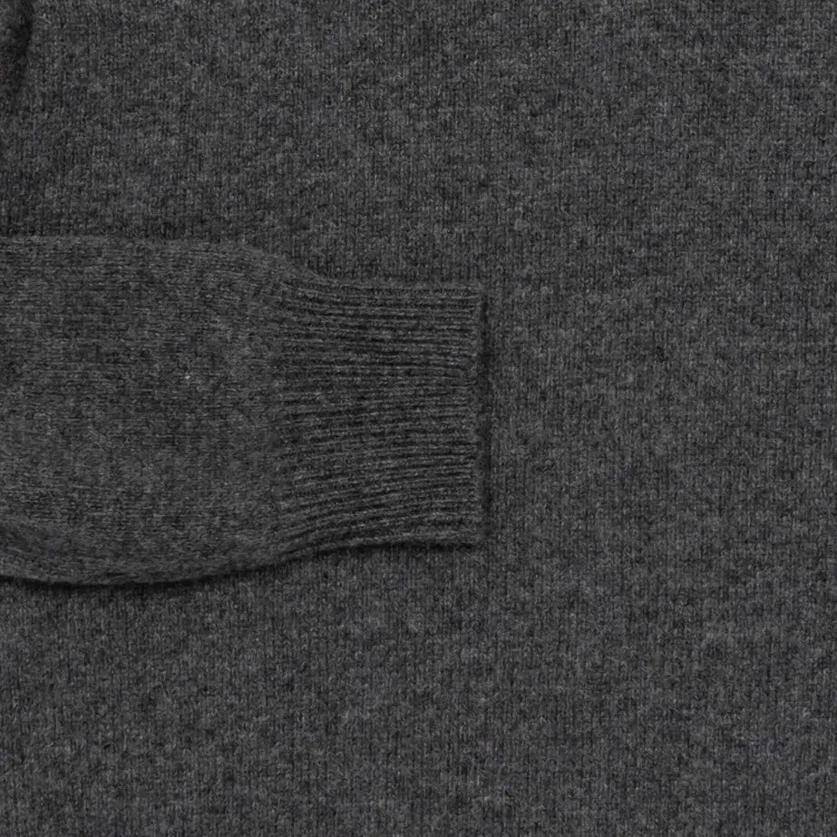This cashmere and wool blend quarter zip is perfect for the winter. Super soft, lofty, and warm, layer this style over your favorite tee or button-down for an effortlessly good look. Jersey knit body with a ribbed trim and ribbed mock neck. Vintage brass zipper features a leather pull.